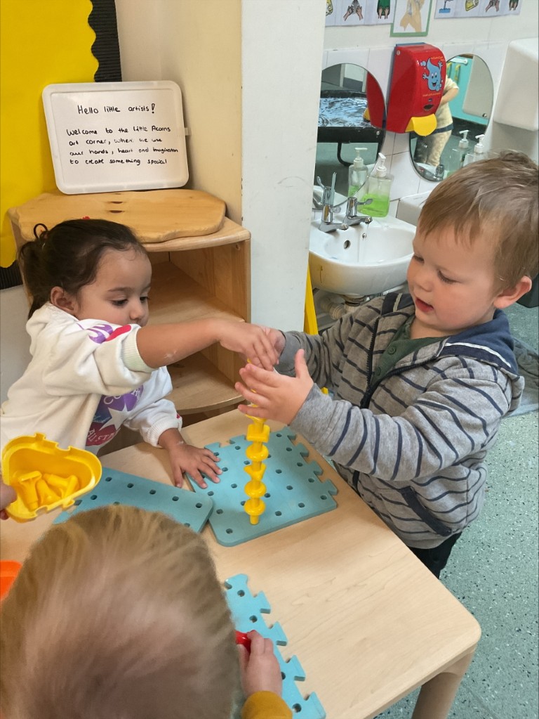 A particularly exciting development has been opening up the garden space, which now allows children from both the Acorns and Little Acorns classrooms to move freely between indoor and outdoor learning environments. It has been wonderful to observe how the children are embracing this enhanced freedom to explore and learn across these connected spaces, fostering greater independence and choice in their learning experiences.